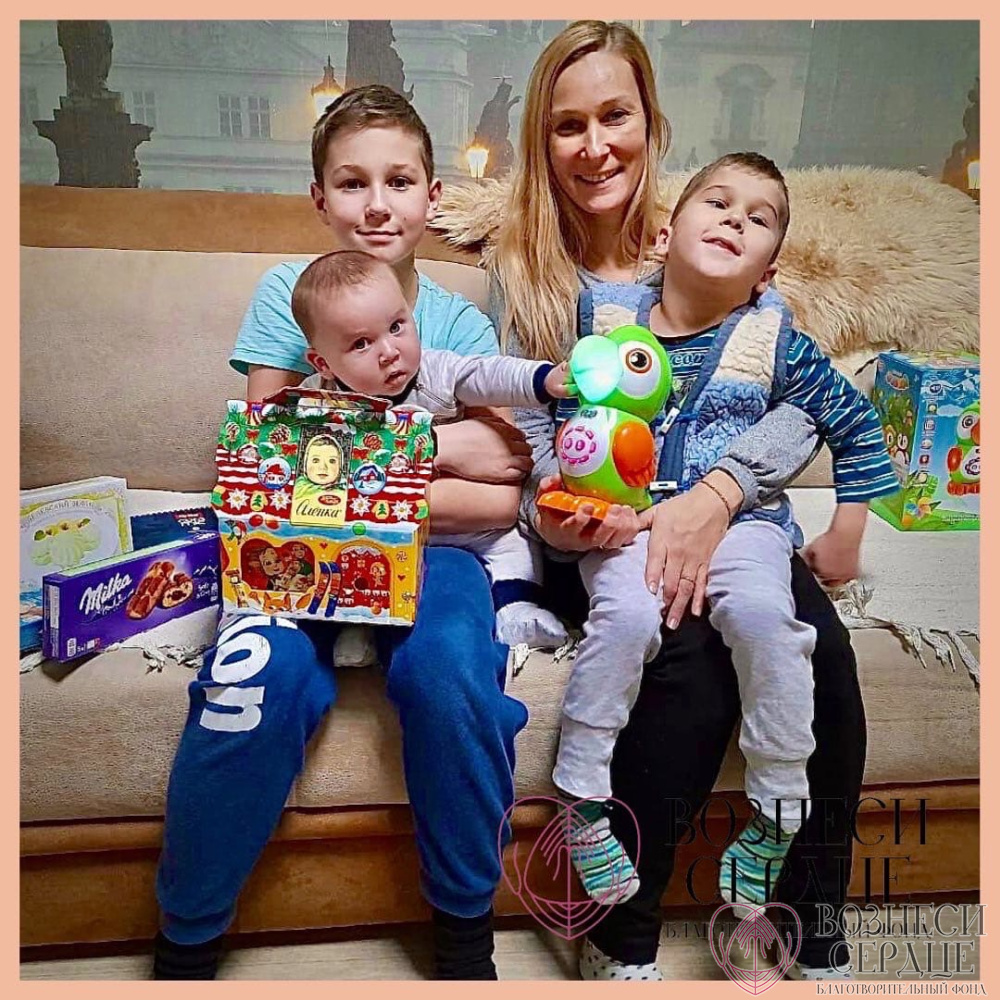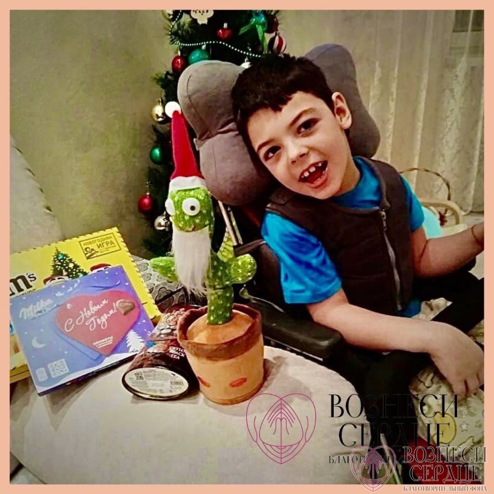 «Спасибо, уважаемый Благотворительный фонд "Вознеси Сердце" и наша волшебница! Спасибо за подарок который сегодня к нам приехал. Артемий очень обрадовался подарку, а танцующий Кактус игрушка его вообще покорил! Кушал сладости вместе с игрушкой в руках и спать наверное тоже с кактусом ляжет) очень всем Вам благодарны, мы благодаря всем Вам - верим в Чудеса!!! Поздравляем вас с Новым годом, желаем здоровья и благополучия всем Вам!»