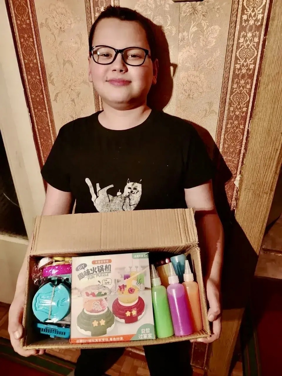 Мечтал получить в подарок на Новый год набор для изготовления слаймов. И его мечту исполнила заботливая Снегурочка Наталья.