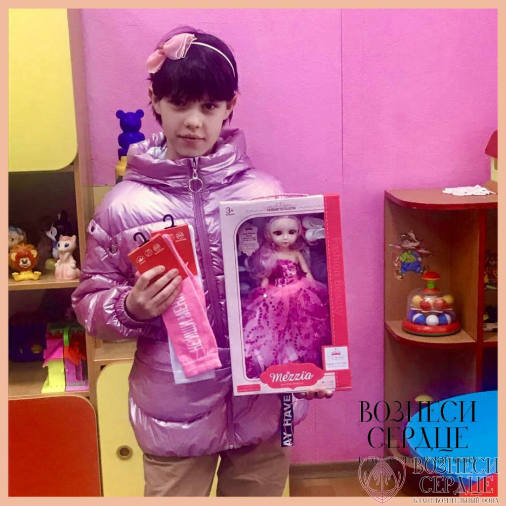 Нам пишут: «Алена в подарок получила одежду: куртку, спортивный костюм, толстовку, ветровку, шапку, гетры и куклу, резиночки для волос и ободок. Все вещи подошли, она очень рада и благодарна. Носит куртку и спортивный костюм постоянно. Говорит, что очень нравится. Спасибо огромное!!!».