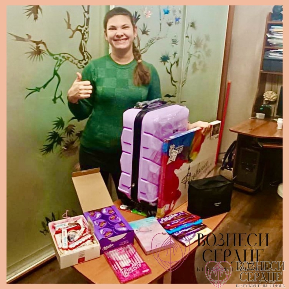 Девочка очень хотела получить в подарок на свой день рождения новый чемодан для поездок на лечение, в который бы поместились: одежда, учебники и личные вещи (прошлый чемодан порвался при последней поездке на реабилитацию).