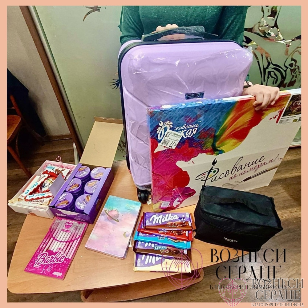 «Хотим от всей души поблагодарить нашу тайную Волшебницу за такие шикарные подарки для Маши! Теперь дочка будет ездить на реабилитации со своим новеньким чемоданчиком, в который поместятся все её личные вещи! К чемодану наш тайный даритель приложила ещё столько всего! Маша даже растерялась! Картина по номерам, маркеры для скетчинга, набор шариковых ручек Барби, блокнот и огромный набор сладостей Милка и Киндер. Радостные глаза дочери говорят сами за себя. Ребенок счастлив, а это самое главное! Благодарим от всего сердца за такие радостные моменты для дочери! Пусть в Вашей жизни будет много радости, счастья и благополучия! Пусть в Вашей семье царит любовь, понимание и добро! Здоровья Вам огромного! Спасибо!»