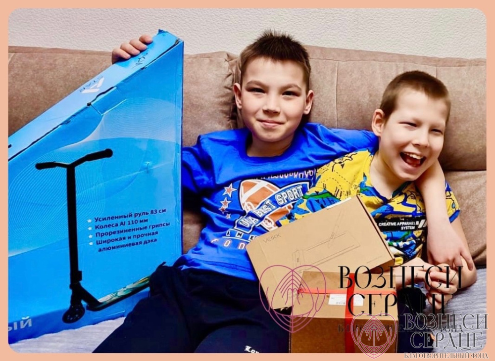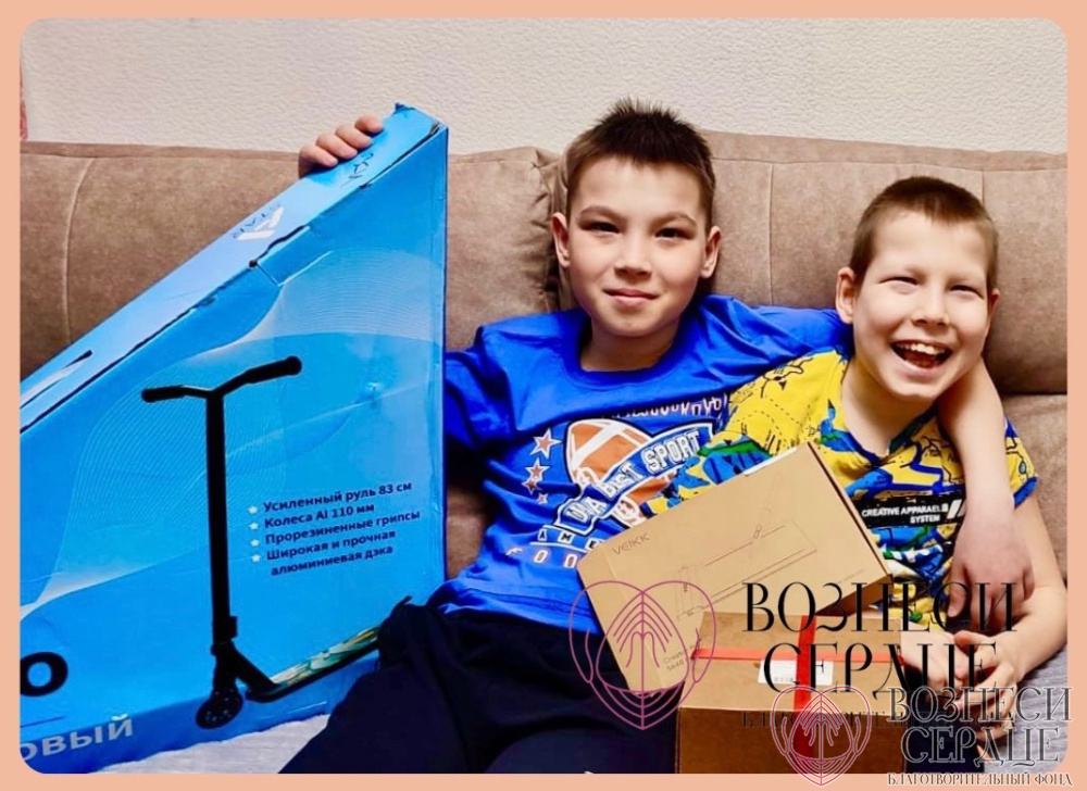 "... Здравствуйте. Хочу выразить огромную благодарность нашему доброму Дарителю. Дети на день рождения получили свои желанные подарки и были так счастливы! Их глаза сияли! Спасибо, что помогаете делать детей радостнее, счастливее. Низкий поклон перед людьми, с удивительно добрым сердцем! Огромное материнское спасибо!!!"