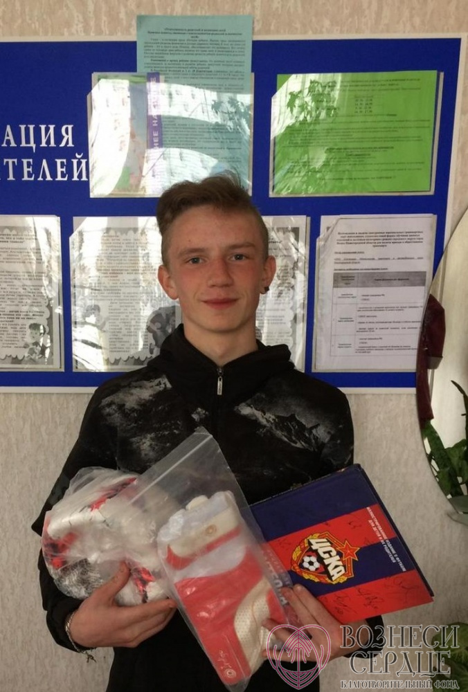 Сосунов Яков (социально-реабилитационный центр г. Выкса) получил желанный подарок, даже спортивная форма ЦСК теперь у него есть, а ведь совсем не ждал, что мечта исполнится!