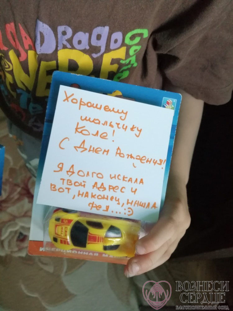 А закончить пост мы хотим добрыми словами от дарительницы: «Хорошему мальчику Коле! С днём рождения! Я долго искала твой адрес и вот, наконец, нашла. Фея».