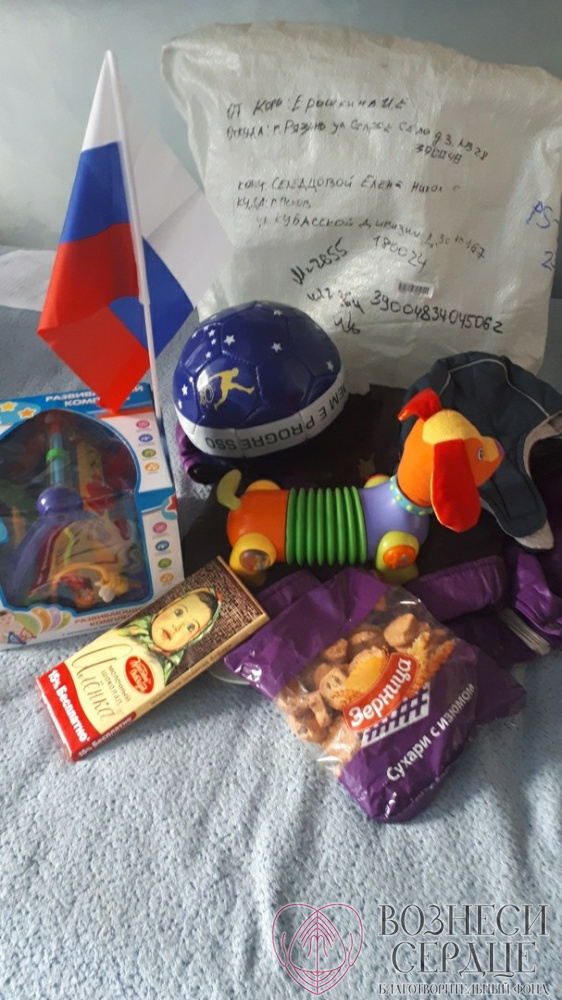 Она прислала музыкальную развивающую игрушку, много сладостей для радости старшим братикам. Костя, хоть и не умеет пока говорить, но вся семья радуется, глядя на то, как он играет с игрушкой.