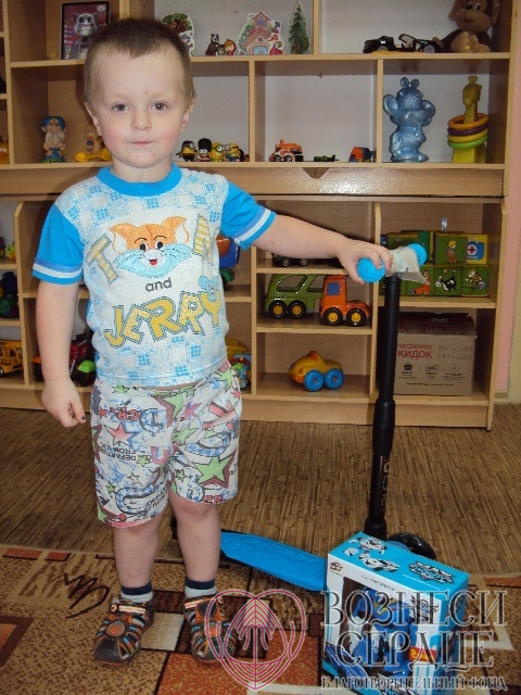 Рожко Витя совсем ещё малыш, но теперь знает, что день рождения - хороший праздник! Алексей знает толк в машинах и подарил мальчонке огромный грузовик! Теперь Витя гоняет на своём транспорте по игровой, ему весело и радостно! Поздравила Витю и добрая Виктория. Теперь у Вити есть свой самокат и робот! Вот такой чудесный день рождения прошёл у Вити в социальном центре.