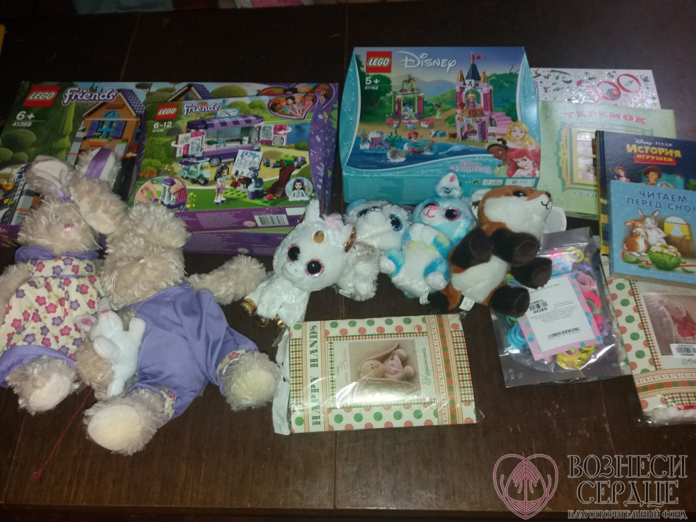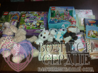 А вчера для девочек пришла огромная посылка от Алины из г. Москва! Здесь все мечты сразу: три набора Лего, очаровательные зайчата для Евы и Ани, книжки, игрушки – всего столько много, что девочки весь день были под впечатлением! Сегодня продолжают играть с новыми игрушками, смеются и благодарят щедрых дарителей. Два пушистых зайчика весело оживают в детских руках, разговаривают друг с другом и бегают наперегонки.