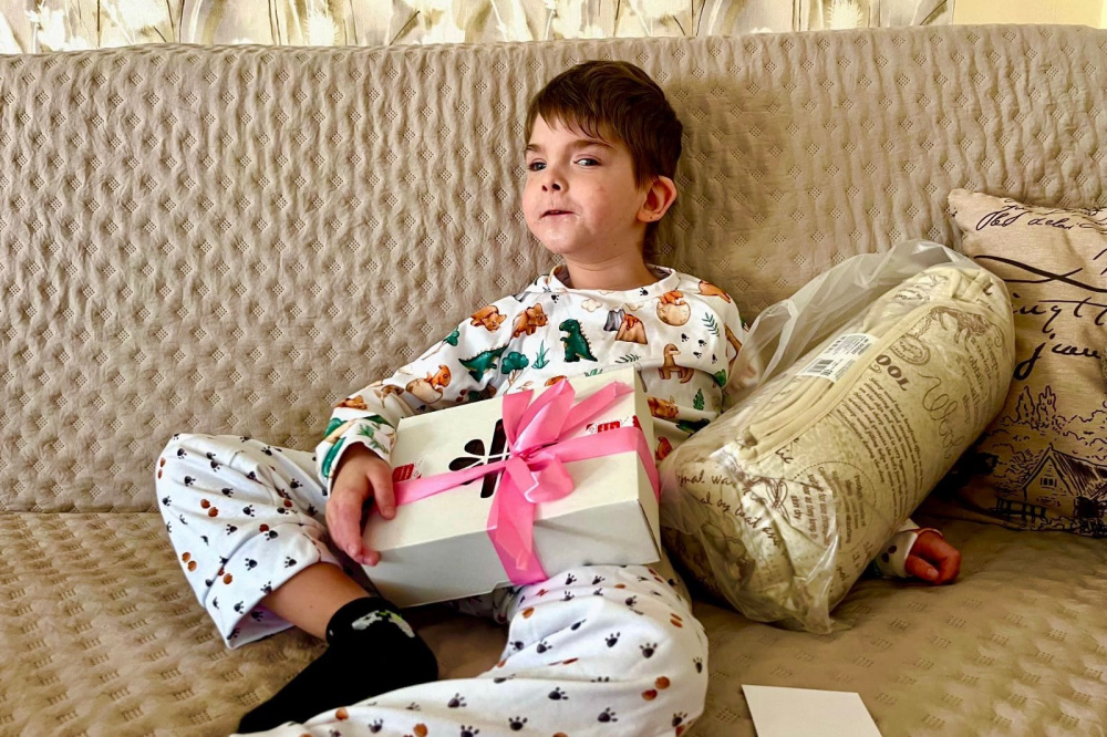 «Спасибо большое нашему дарителю за подарок. Сынок очень рад. Подарок понравился. Пижама, одеяло и сладости. Степан теперь будет сладко спать с такими добрыми подарками. Спасибо нашему благотворителю за внимание к особенным деткам. Мы очень ценим Вашу заботу. Желаем вам счастья, здоровья, мира и тепла.» - пишет мама именинника в своем письме.