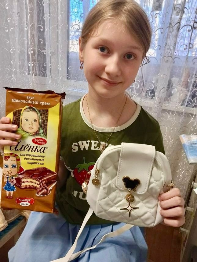 Именинница мечтала о красивом спортивном костюме и сумочке. И чудесный подарок, полный разных сюрпризов, выслала для неё заботливая Наталия.