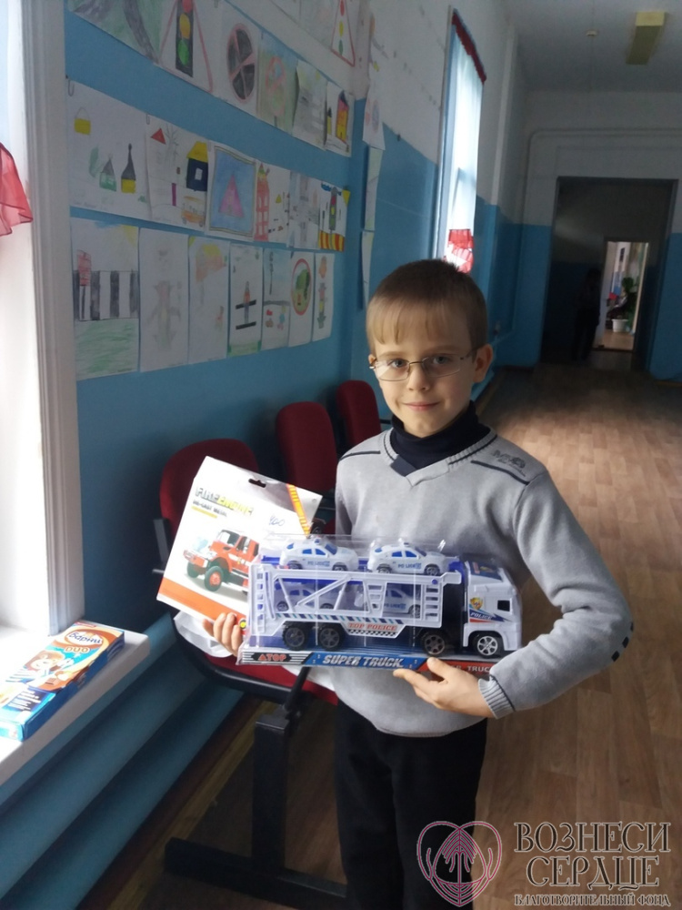 *Чеснов Андрей из приюта в г. Выкса получил отличный подарок от доброго волшебника! Мальчику очень понравились игрушки! Он так аккуратно их вынимал и рассматривал! Был взволнован и удивлен! Спасибо большое прекрасному человеку за заботу и чудесный подарок ко дню рождения!