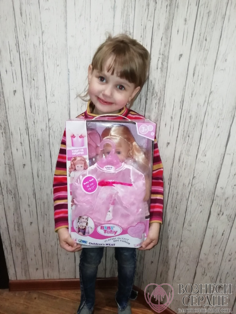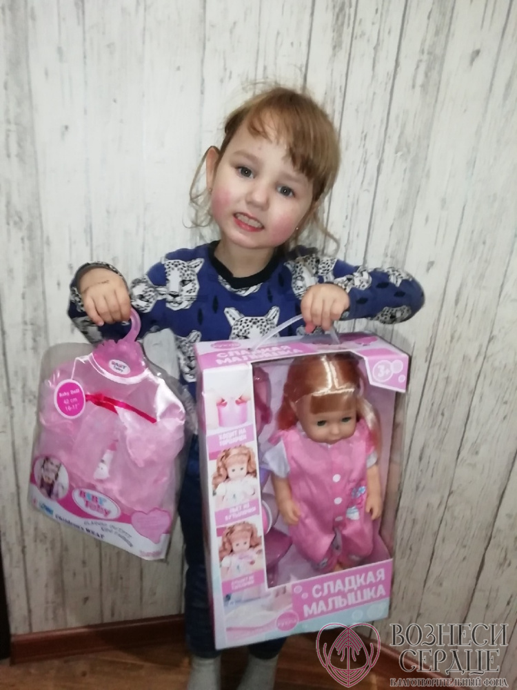 "Хочется выразить благодарность Горячевой Юлии из Нахабино за подаренные подарки и огромное счастье для моих девочек. Получили подарки в День Рождения Ульяны, а счастливы были обе, т.к ждали, когда же волшебница-фея им подарит то, о чем они так мечтали, а это куклы и одежда к ним! Юлия, вы исполнили мечту девчонок. Спасибо фонду "Вознеси Сердце" за такую чудесную акцию и что дарите настроение многим семьям и их деткам! Огромного всем здоровья и Храни Вас Господь"