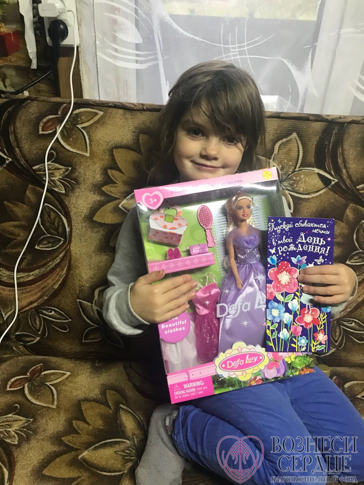 Тимофеева Наташа из Псковской обл. получила долгожданный подарок. Людмила из г. Ростов-на-Дону порадовала девочку куколкой и поздравительной открыточкой! Благодарим добрую фею от всей души. Семья передаёт сердечное спасибо и поклон за радость для их доченьки. Эта семья тоже с непростой судьбой и трудной жизненной ситуацией. У нас был сбор для них на мебель и материалы для ремонта, и очень скоро мы покажем как уютно и красиво стало у них в доме.
