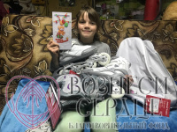 «Здравствуйте дорогие сотрудники фонда! Огромное вам спасибо за праздник и кучу эмоций в нашей большой семье. Посылку получили 10 октября, но распечатали чуть позже. Дети с волнением ждали, когда же мы откроем и покажем подарок.