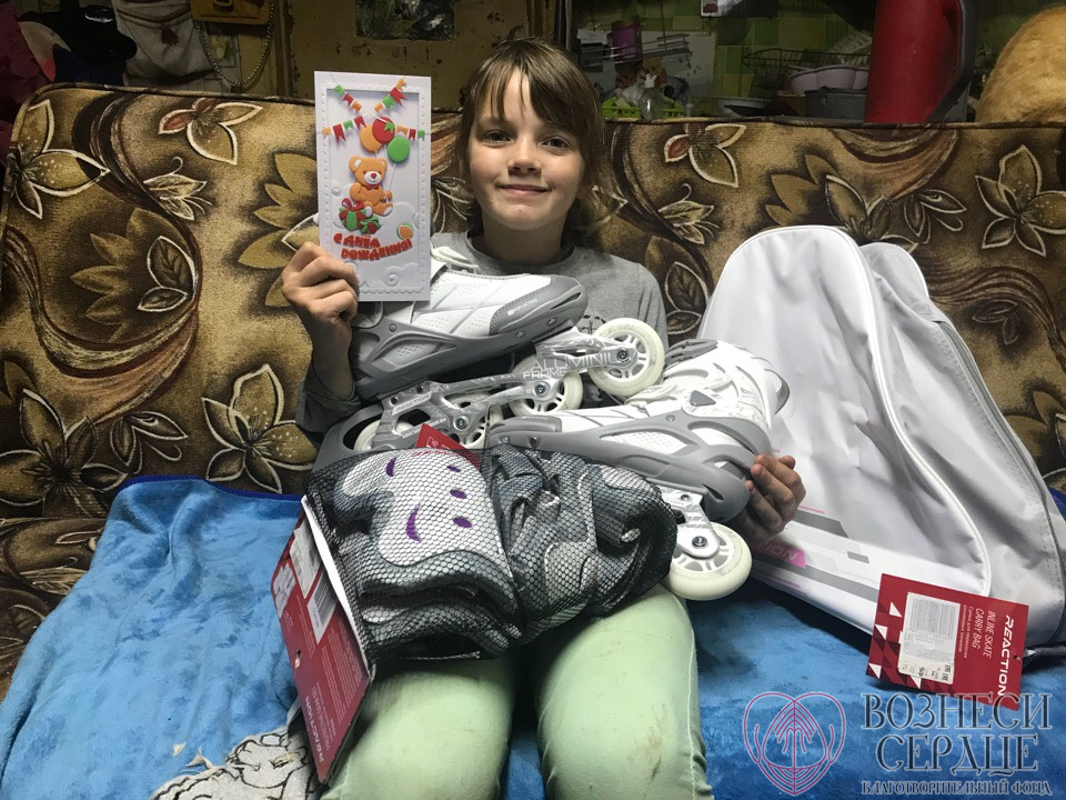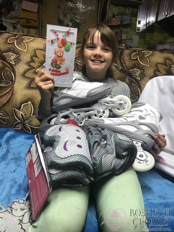 Девочка совсем неизбалованна подарками, поэтому для неё ролики - это просто чудо! Девочка любит подвижный образ жизни, поэтому подарок очень актуален.