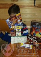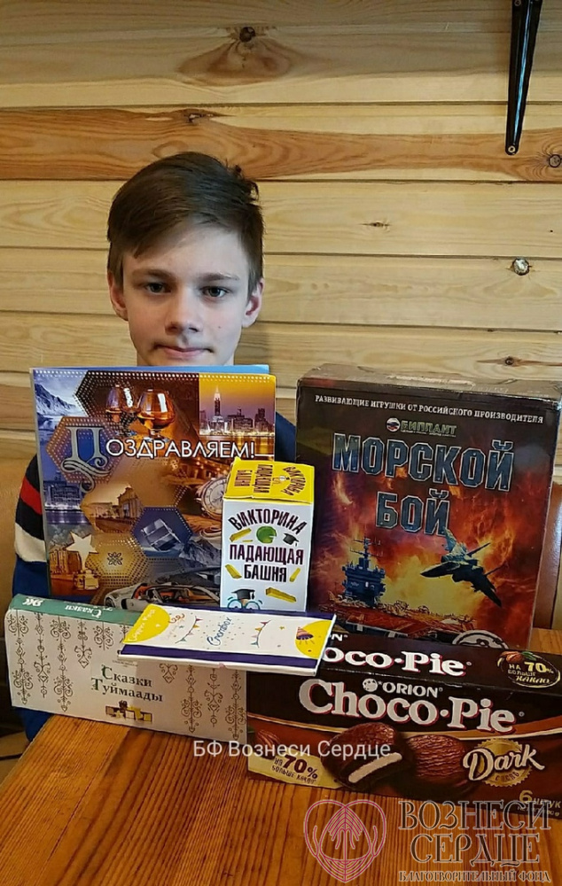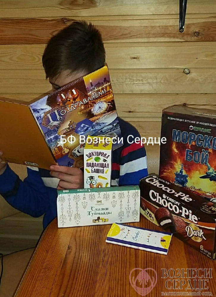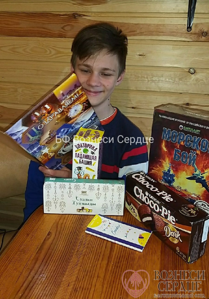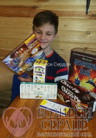 Добрая Настя прислала парнишке увлекательные игры, сладости и большую открытку. Герман с удовольствием играет в настольные игры со своими братьями и сестрами.