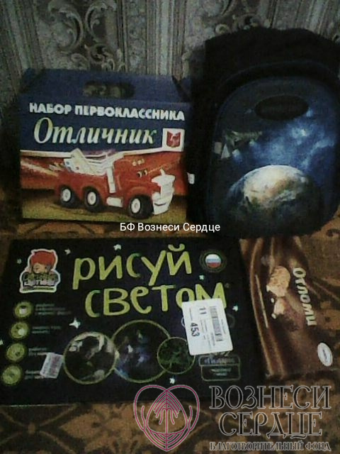 Так же и решила его поздравить и Мария, прислав замечательный набор будущему первокласснику, шикарный портфель и игру «Рисуй светом».