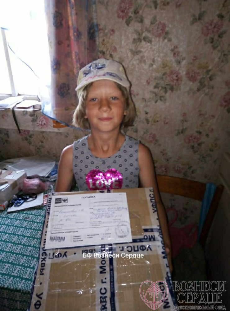 Девчушка сейчас живёт дома и ей передали лично посылочку! Радости нет предела! Ведь это первая посылочка с подарками для неё! Спасибо огромное благодетельнице за такой щедрый подарок.