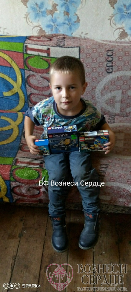 А добрая Наталья из г. Москва поздравила именинника и подарила ему машинку и большой набор конструктора. Столько подарков Максим давно не видел, да и семья с низким доходом позволить себе этого не может.