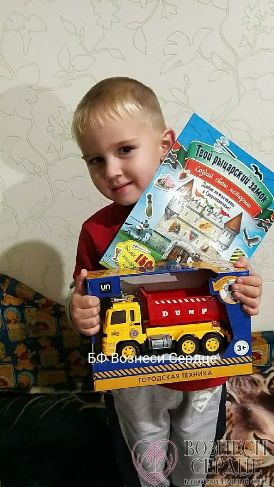Мужичук Тимофею из г. Псков исполнилось 3 года. Добрый волшебник Сергей подарил мальчику на день рождения машинку и рыцарскую книгу! Тимоша очень обрадовался такому замечательному подарку. Весь вечер он не выпускал машинку из рук и играл с ней.