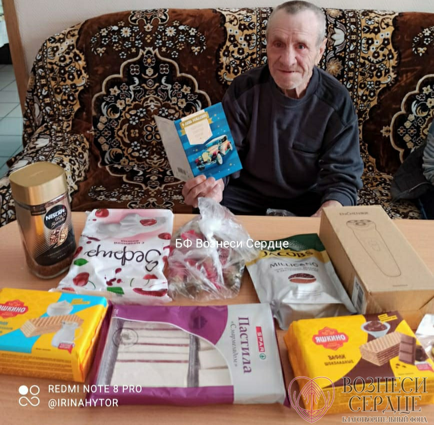 Добрые слова из Даниловского дома-интерната: «От всей души Кайтер Василий Иванович благодарит доброго дарителя из г. Москва за предоставленный сюрприз в виде подарка ко дню рождения. Посылку вручили немножко позже из-за болезни Василия Ивановича! Но, Слава Богу, все миновало!