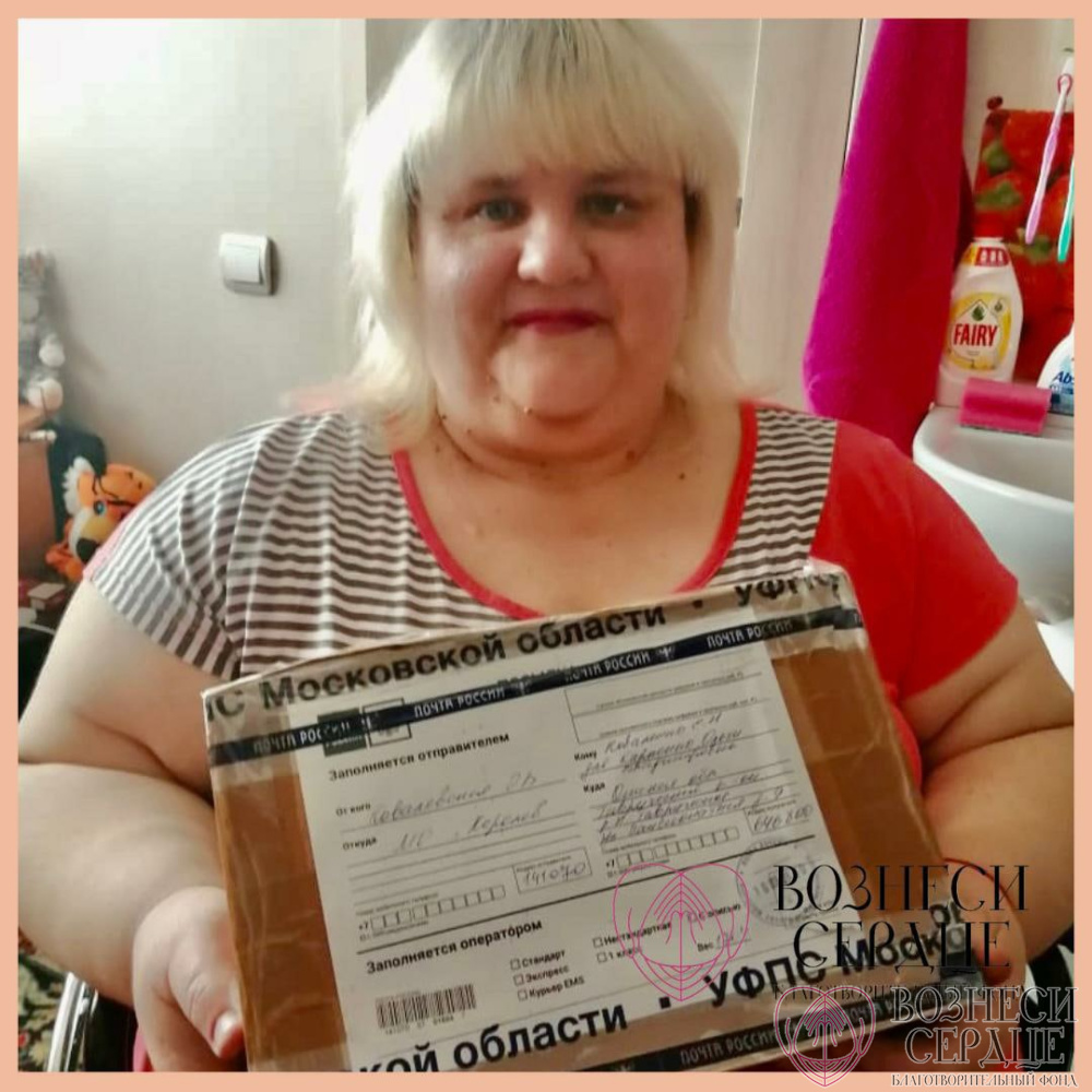 Карпенко Ольга Владимировна проходила длительное лечение в больнице, поэтому подарки получила только сегодня. Вот такой ждал её сюрприз при выписке! На микроволновую печь мы собирали средства и сразу же заказали, а посылочку со сладостями, духами и кремами прислала добрая фея из г. Королёв. Спасибо большое!