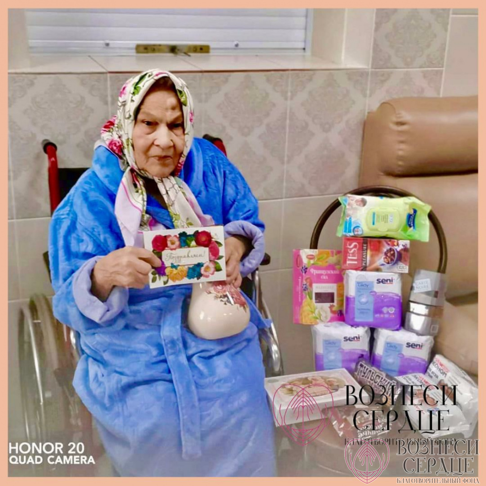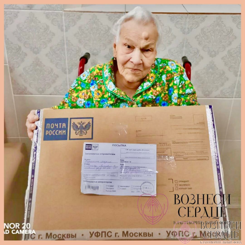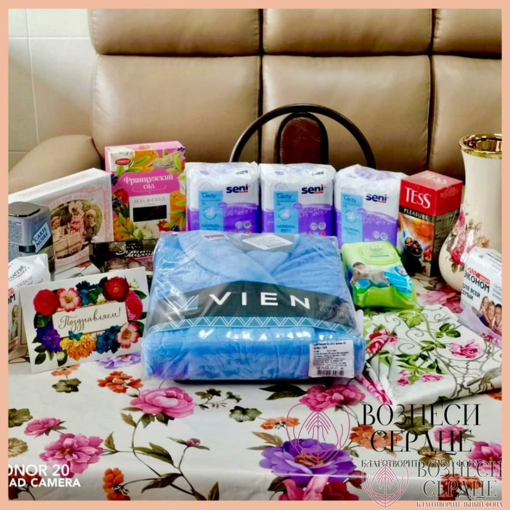 «Для Экономовой Тамары Михайловны пришла из Москвы очень большая посылка от дарительницы Марии. Чего только в ней нет. Как волшебная шкатулка! Поздравительная открытка, ваза для цветов, влажные салфетки 3 упак., урологические прокладки 3 упак., мармелад, зефир, кофе, чай, очень вкусные конфеты "Птичье молоко", головной платок, очень мягкий банный халат небесной голубизны. Халат очень красивый, именинница даже растерялась от такого шикарного подарка. Тамара Михайловна сердечно благодарит Марию за внимание, доброту и отзывчивость, - пишут нам.