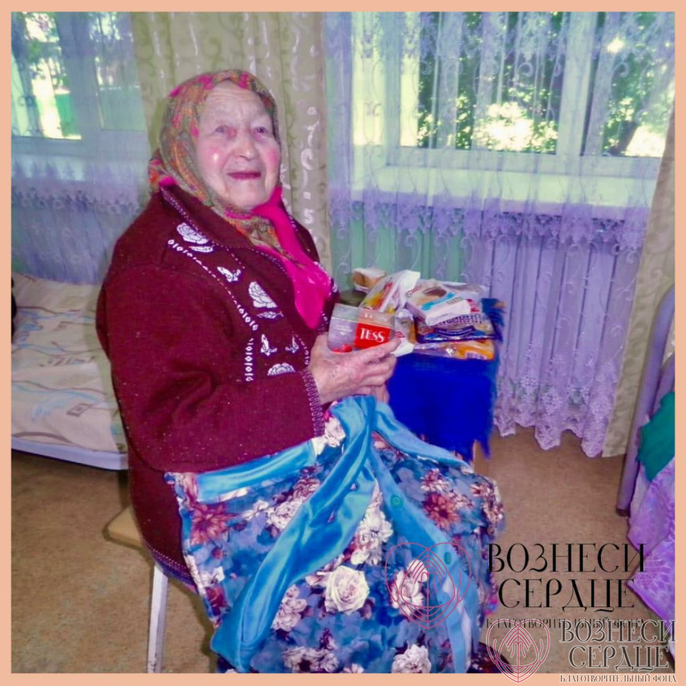 Эта же добрая семья прислала посылку в Глушковский дом-интернат для Осьмак Софии Васильевны. Здесь много сладостей: вафли, пастила, печенье, мармелад, пряники, зефир. Бабушке очень понравился платок и халат. Она от души благодарит щедрых дарителей за такой душевный подарок!