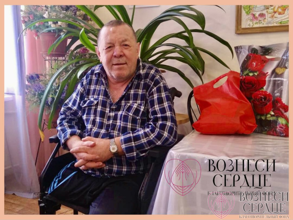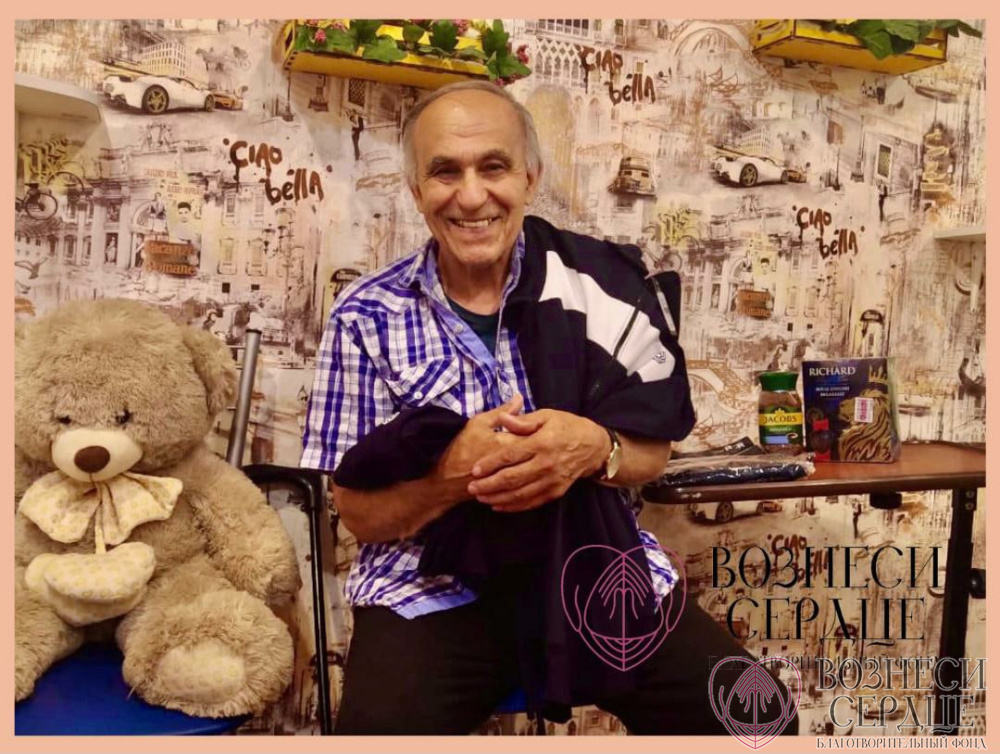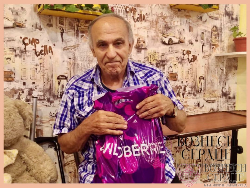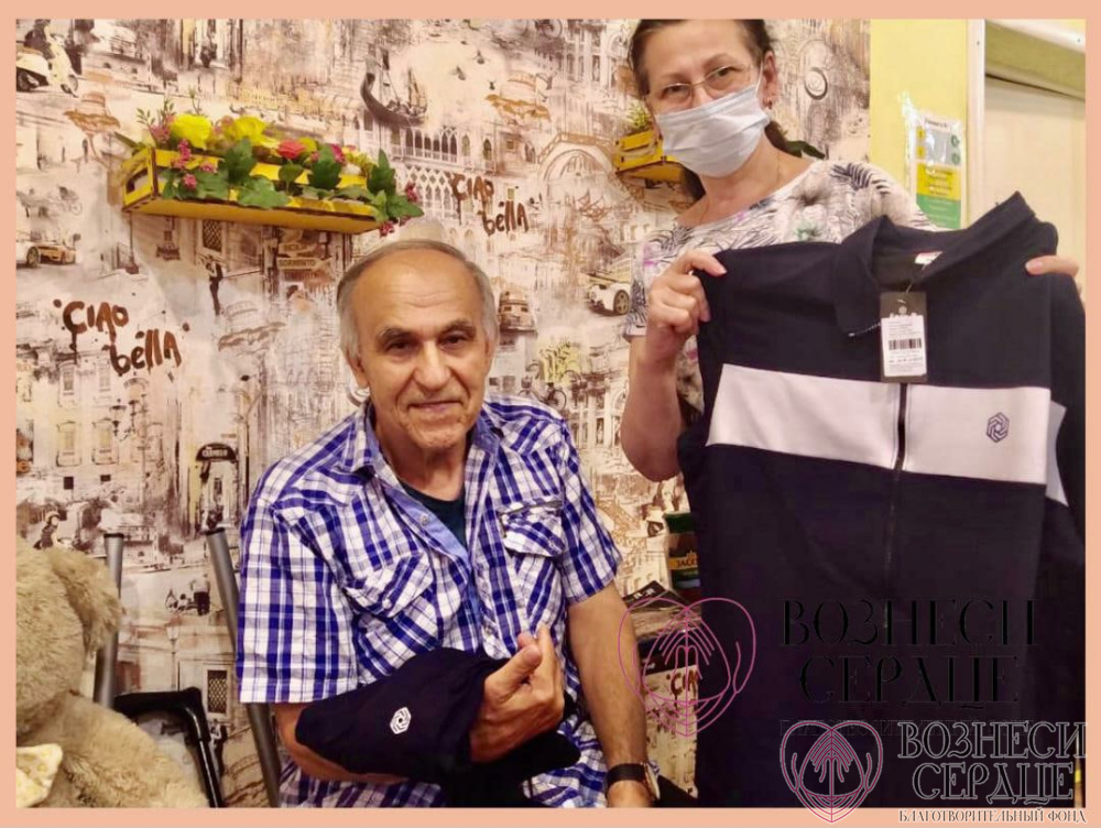 Аминов Нурит Абдусаламович очень хотел получить ко дню рождения спортивный костюм. И его мечта сбылась! Замечательный стильный костюм, в очень интересном цветовом решении. И размер точно его! Кроме этого в посылке Фонда – футболка, чай и кофе.