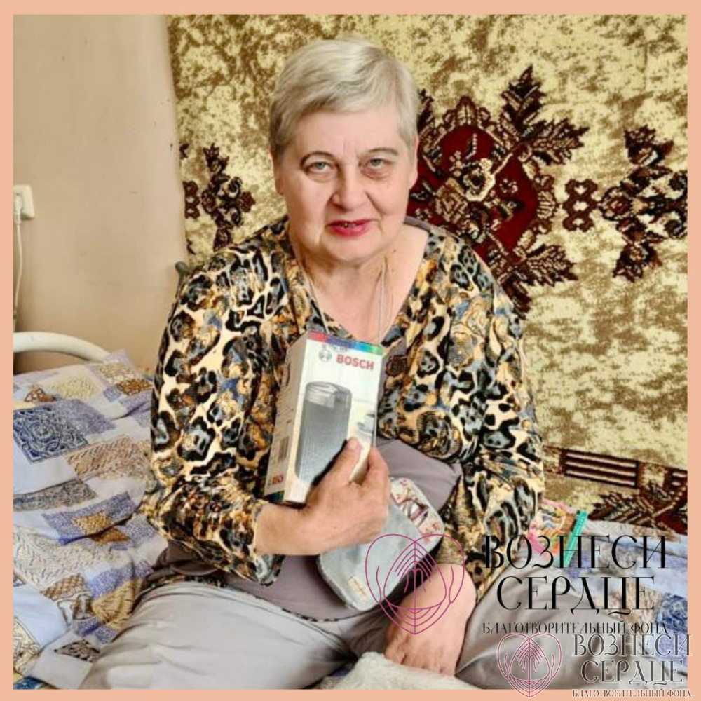 Павловой Наталье Николаевне из Магаданского дома-интерната от нас с вами мы купили кофемолку и сладости. Слова благодарности и пожелания здоровья, счастья шлёт именинница своим благодетелям.