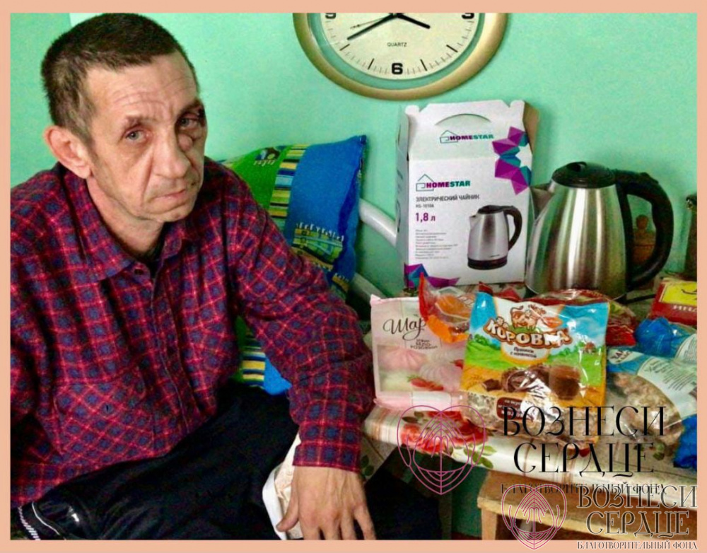 Галанцев Алексей Сергеевич из Таврического дома-интерната Омской области от всего сердца благодарит Татьяну за электрический чайник и много сладостей. Он уже сегодня заваривает чай и созывает своих друзей на угощение. Для него и его друзей – это целое событие в 4 стенах учреждения.