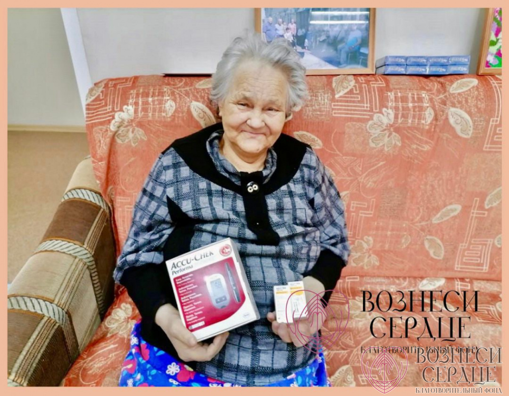В этот же день поздравили Поволоцкую Светлану Тимофеевну. Посылка пришла от ООО «Интернет решение» из Республики Татарстана. Добрые люди подарили имениннице аппарат для измерения сахара « ACCU-CHEK» с тест-полосками. Наша именинница давно мечтала о такой нужной вещи. И вот мечты сбываются!