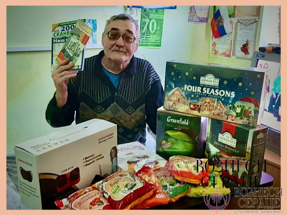 Николай Васильевич Буянов более 10 лет не видел таких подарков, которые получил в свой юбилей! Эмоции зашкаливали, слов не было...только приятное удивление!!! Николай Васильевич получил "шикарную" посылочку в свой 70-летний юбилей! Это массажная подушка, огромное количество чая и сладостей, журнал со сканвордами и открыточку с теплыми словами. Наталия и Геннадий из г. Москва от души поздравили нашего юбиляра, подарили отличные эмоции! Николай Васильевич очень благодарен своим дарителям! Желает им крепкого здоровья, счастья в жизни, постоянного креатива, прекрасного настроения, радостных улыбок и отличного настроения! А так же поздравляет Вас с наступающим Новым 2022 годом!