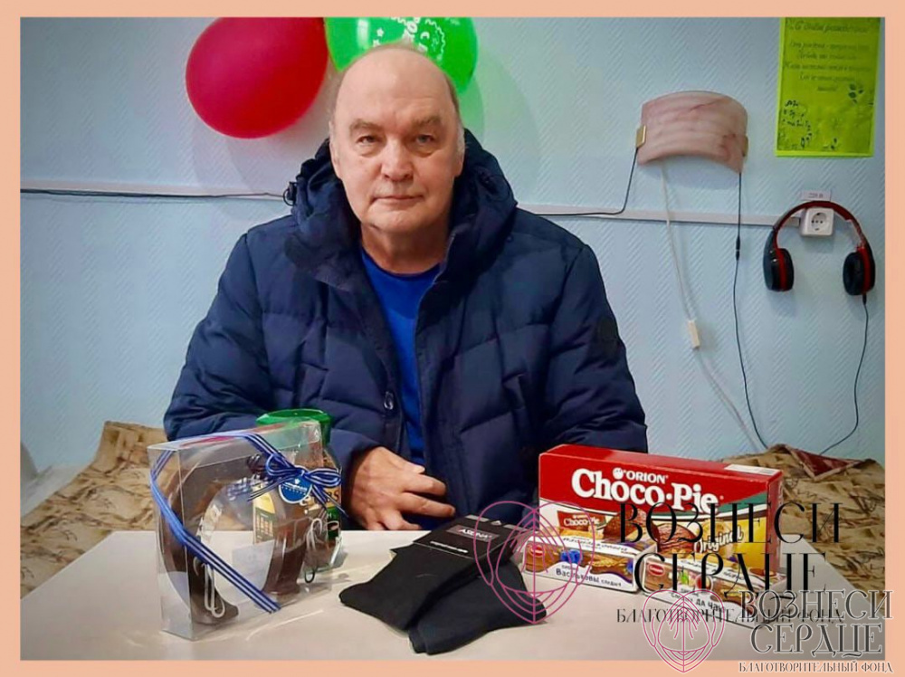 Андрей Александрович Головачев многократно благодарит свою дарительницу Юлию из г. Москва! Ваше доброе сердце, открытая душа не оставили в стороне нашего подопечного. Андрей Александрович со слезами на глазах принимал подарок: желанная и долгожданная теплая куртка, сладости, носочки, баночка любимого кофе и подковка на удачу принесли огромное счастье и душевное тепло. От всего сердца Андрей приносит Вам свои благодарности. Желает Юлии счастья, удачи, благополучия! Спасибо Вам за такой отменный подарок! Как здорово, что на свете есть такие люди, которые не проходят мимо одиноких!