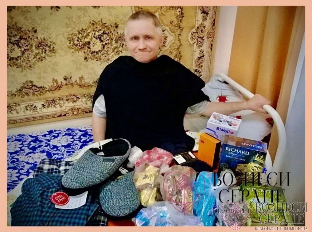 Нам пишут: «Из г. Санкт-Петербурга как раз к Новому году пришла посылка для именинника Русяева Семена Васильевича. Анжелика Сергеевна поздравила именинника с днем рождения и подарила замечательный подарок: две фланелевые рубашки, свитерок, комнатные тапочки, носочки, одеколон, необходимый тонометр, кучу угощений к чаю и художественную литературу. Теперь есть что надеть на праздник и полакомиться чайком. Спасибо Анжелика за такой щедрый подарок. Семен, к сожалению, не может говорить, осложнения после инсульта, но по выражению лица видно, как он рад подарку, улыбается в знак благодарности, а значит счастлив и доволен. Здоровья Вам и Вашим близким, с наступающим Новым годом!!!»