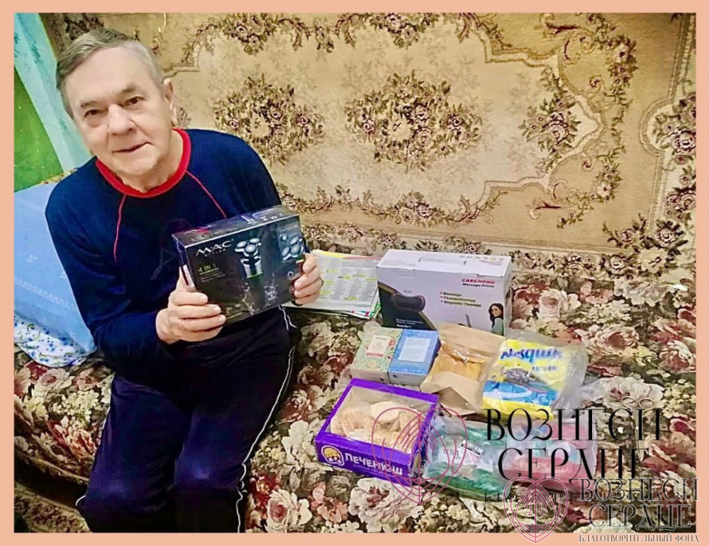Владимиру Дмитриевичу нужен был хороший спортивный костюм, с размером точно угадали, померили все отлично. А сколько угощений у каждого, сладости и вкусности. Огромное спасибо Вам Леонтина за подарки для наших подопечных, здоровья Вам и исполнения желаний. С праздником 8 марта Вас и работников фонда "Вознеси Сердце"».
