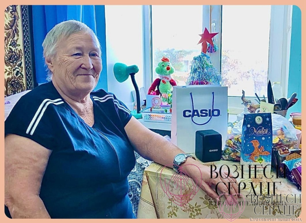 Кожиховой Надежде Васильевне исполнился 71 год. Она хотела в подарок получить наручные часы на браслете и с крупным циферблатом, много конфет и чай. Исполнила желание добрая Юлия. Именинница очень рада и благодарит от души!
