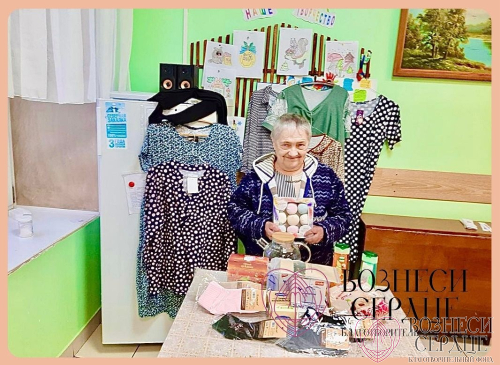 «Добрая фея Валерия из г. Москвы прислала подарок Нине Николаевне Луневой в самый 91-й день рождения! - пишут нам из Новосельского дома-интерната. - Все пожелания именинницы исполнила. Нарядный трикотажный халатик, ночная сорочка, упаковка чая, сладости (2 пачки зефира, упаковка конфет «Птичье молоко», чоко пай Яшкино). Нина Николаевна сразу нарядилась в обновки, всё очень понравилось. Она очень благодарна дарительнице за внимание. Желает ей здоровья и благополучия. Сколько радости и блеска со слезинкой в глазах доставляют подарки для наших подопечных».