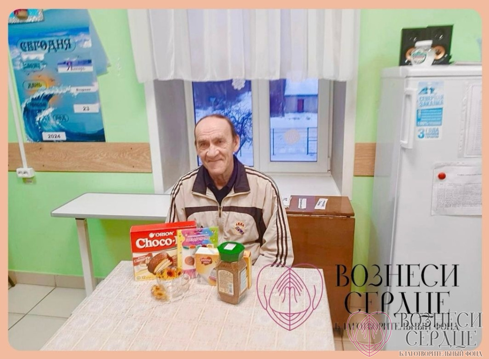Данилов Александр Михайлович празднует свой первый день рождения в стенах учреждения. Каково же было его удивление, когда ему принесли подарки от Полины.