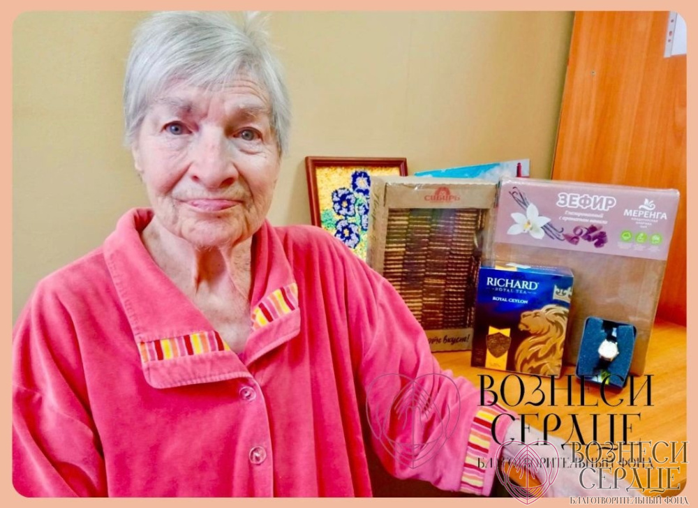 Ефимовой Тамаре Ивановне исполнилось 84 года. Она очень добрая, общительная, жизнерадостная. На день рождения она хотела получить в подарок часы с большими цифрами на руку и сладости. Порадовала именинницу добрая Светлана. Тамара Ивановна передаёт пожелания мира, любви и согласия в семье, здоровья и благополучия!
