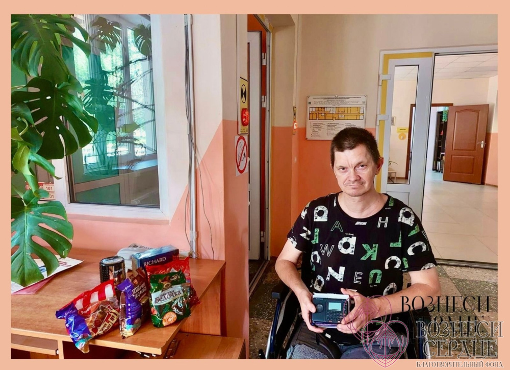 Мы получили долгожданный подарок и поздравления от благотворительного фонда «Вознеси Сердце» и доброй дарительницы Натальи. Она прислала Земцову Евгению Вячеславовичу радиоприемник, кофе, чай и сладости. Подарки очень понравились имениннику. В благодарность он шлет теплый привет дарительнице и желает ей здоровья, всего самого наилучшего, благополучия, процветания и хорошего настроения!