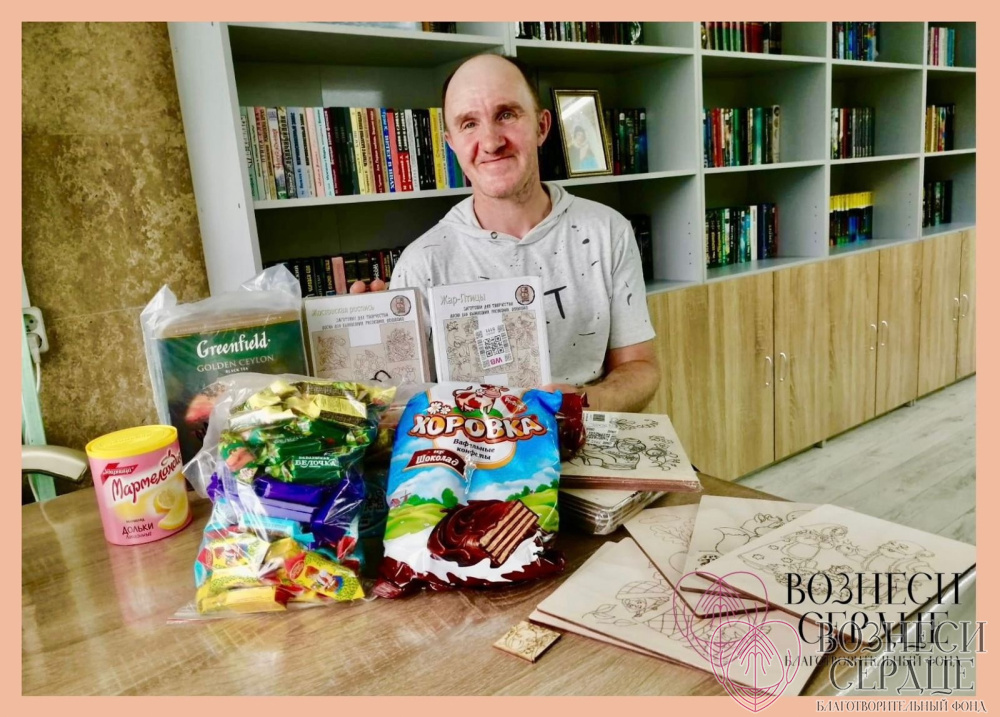 Тёплый привет и добрые слова из дома-интерната «Двуречье» Калужской обл. Вчера, 3 июля, отметил свой день рождения Дорофеев Владимир Григорьевич. «Дарительница Наталья прислала Владимиру замечательные подарки: наборы для выжигания и сладости. Именинник передаёт Наталье огромное спасибо, благодарит за внимание к нему и желает крепкого здоровья и счастья!» - пишут нам.