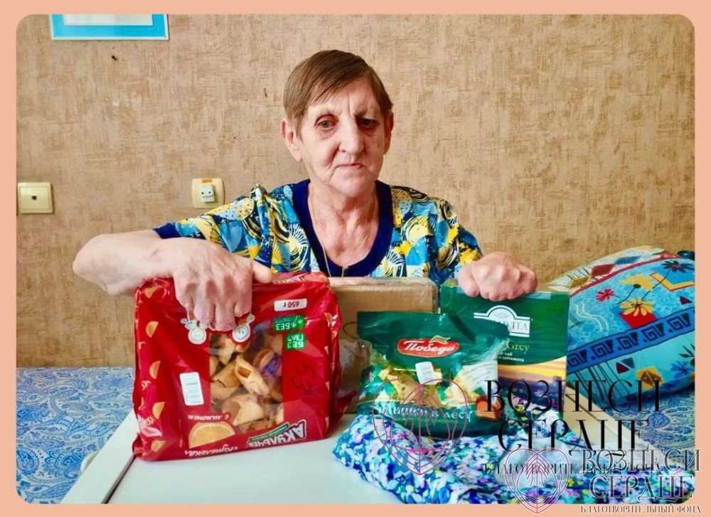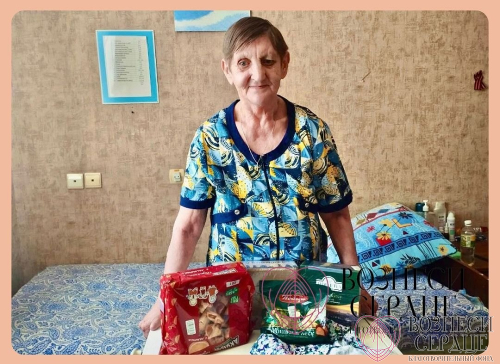 Казурова Галина Леонидовна из Таврического дома-интерната Омской области благодарит щедрую Анну за поздравление и подарки. Дарительница прислала футболку, халат (она уже в нём), сладости и чай. Спасибо огромное за внимание и заботу.
