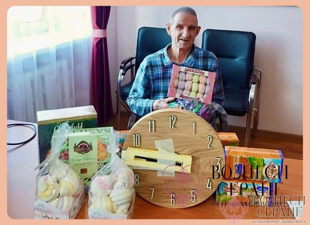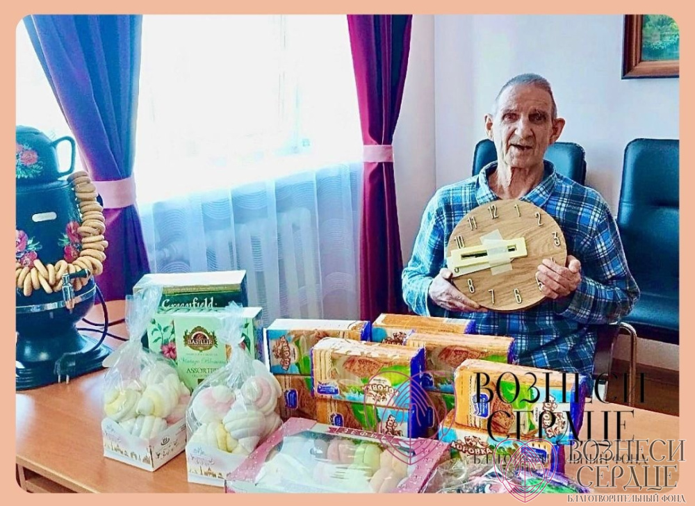 Воробьеву Сергею Георгиевичу из Гдовского дома-интерната 12 июля исполнилось 70 лет. Поздравила его добрая Елена, которая щедро одарила подарками. Она прислала конфеты, печенье, зефир, часы и чай! Именинник очень рад, тронут заботой и вниманием!