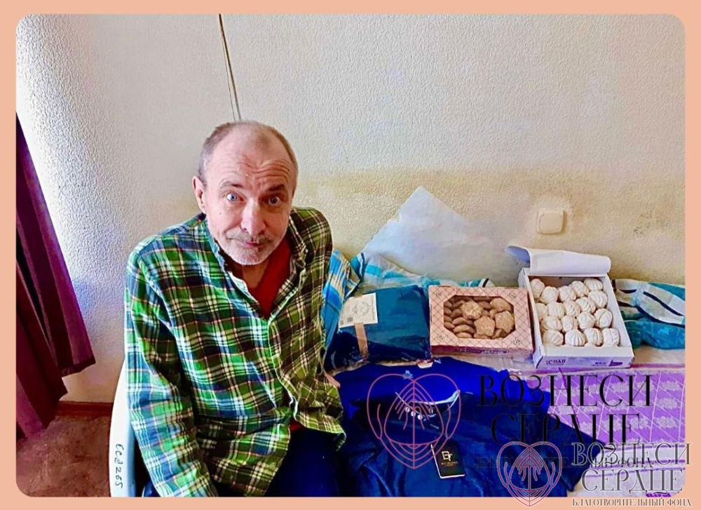 Поздравили Хренова Александра Георгиевича. Он был очень растроган присланным от Анны поздравлением (до слёз) и очень рад, что его вспоминают. Дарительница подарила футболку, полотенце и сладости. Спасибо большое.