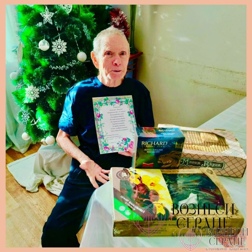 Николай Леонтьевич Борисов мечтал о новой зимней куртке. Силами дарительницы удалось исполнить его мечту... Куртка оказалась впору и очень его порадовала своим фасоном и толщиной. Разнообразные угощения к чаю стали настоящим сюрпризом и позволили организовать яркий, запоминающийся день рождения. Спасибо большое Леонтине за доброту и внимание".