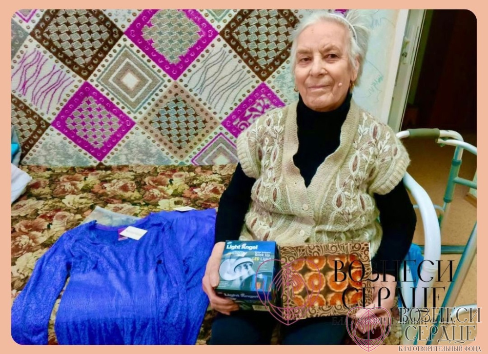 «Раиса Михайловна очень счастлива. Все очень понравилось. Она передает слова благодарности доброй дарительнице и организаторам акции БФ "Вознеси Сердце". Желает всем мира и тепла», – пишут нам.
