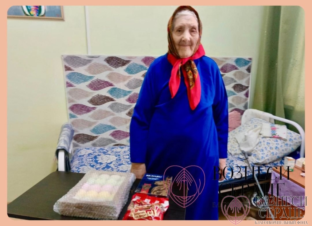 Бабушке исполнилось 92 года. Она очень благодарна за тёплое мягкое платье и сладости к чаю.