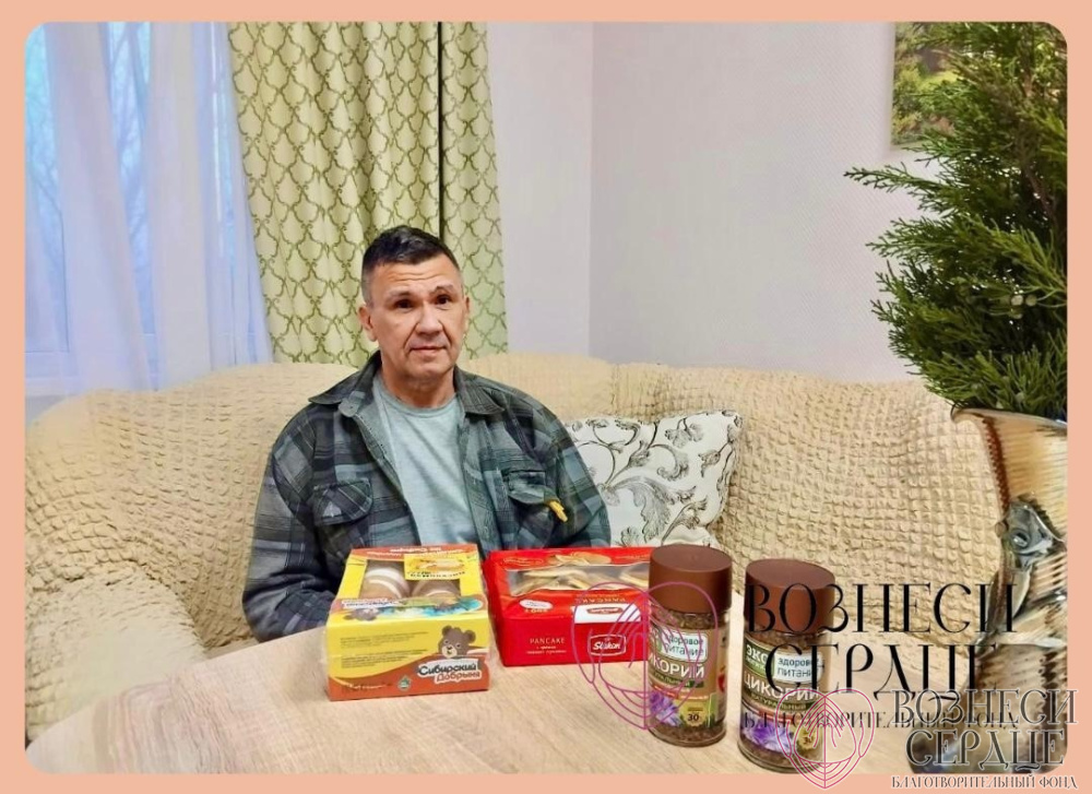 «Именинник немного стесняясь принял подарок, – пишут нам. – Но не мог скрыть радость, что ему подарили подарок. Добрая Екатерина прислала для него две упаковки вкусного печенья и две баночки цикория. Евгений Викторович передает всем спасибо за внимание и поздравление с днем рождения».