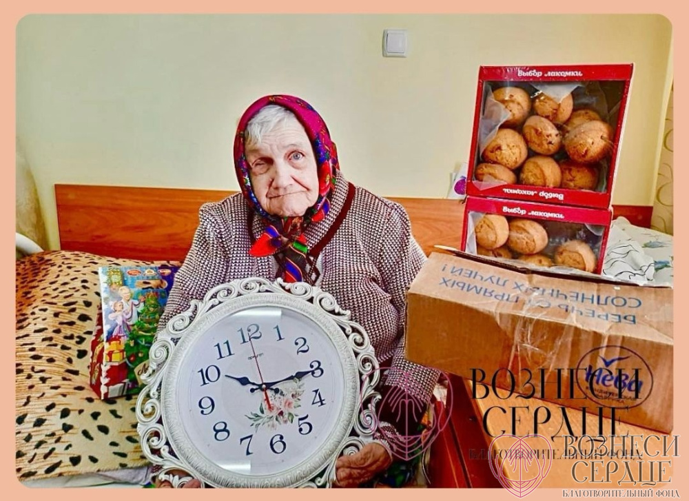 Задорожняя Мария Гавриловна из Новооскольского дома-интерната Белгородской обл. в свой день рождения получила подарочки от дарительницы Наталии. Она очень обрадовалась настенным часам, так как давно мечтала. «Спасибо большое моей дарительнице, что умеете дарить радость пожилым и одиноким людям. А также спасибо большое благотворительному фонду «Вознеси Сердце» за радостные моменты», – передаёт Мария Гавриловна».
