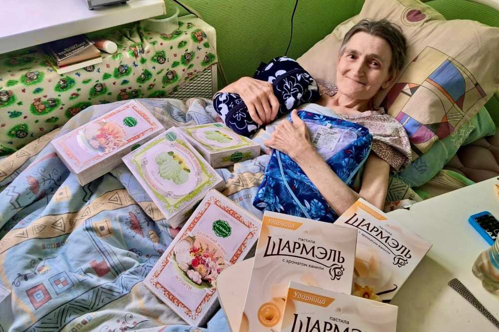 Бардина Ольга Петровна из социально-реабилитационного отделения № 1 (п. Михайловка, Ростовская обл.) рада получить подарок ко дню рождения от Ольги.